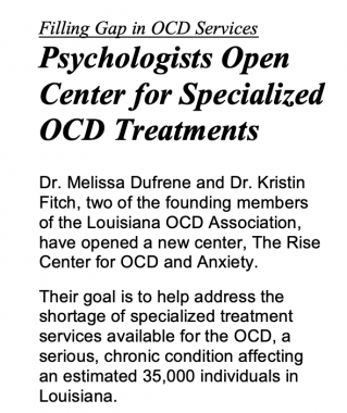 The Psychology Times published a front page article on the establishment of Rise Center for OCD and Anxiety.